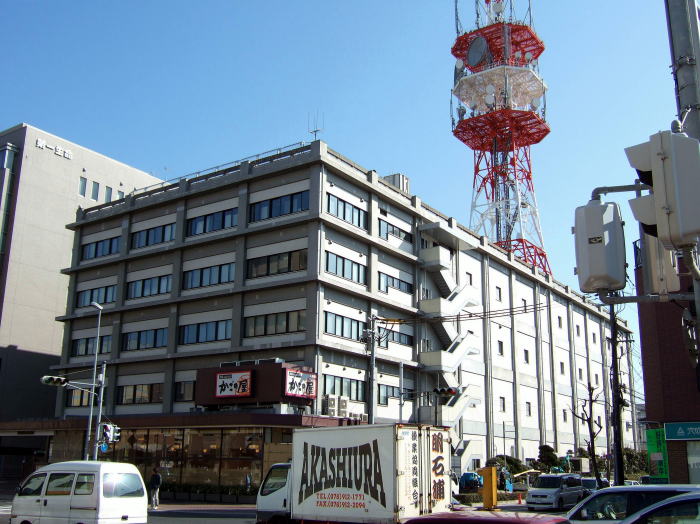 フェリー上から見えたNTT明石ビルの鉄塔。