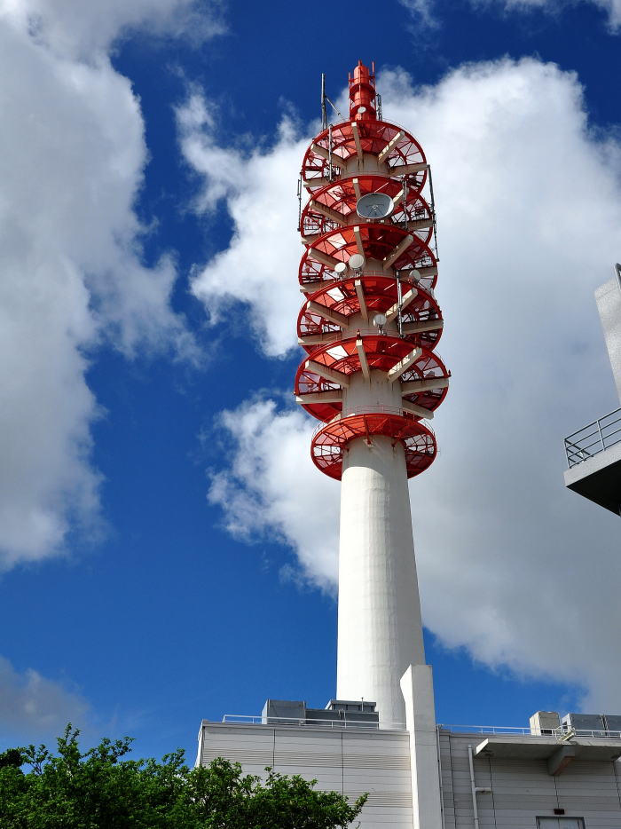 南国の花のような鮮やかな鉄塔のドコモビル。