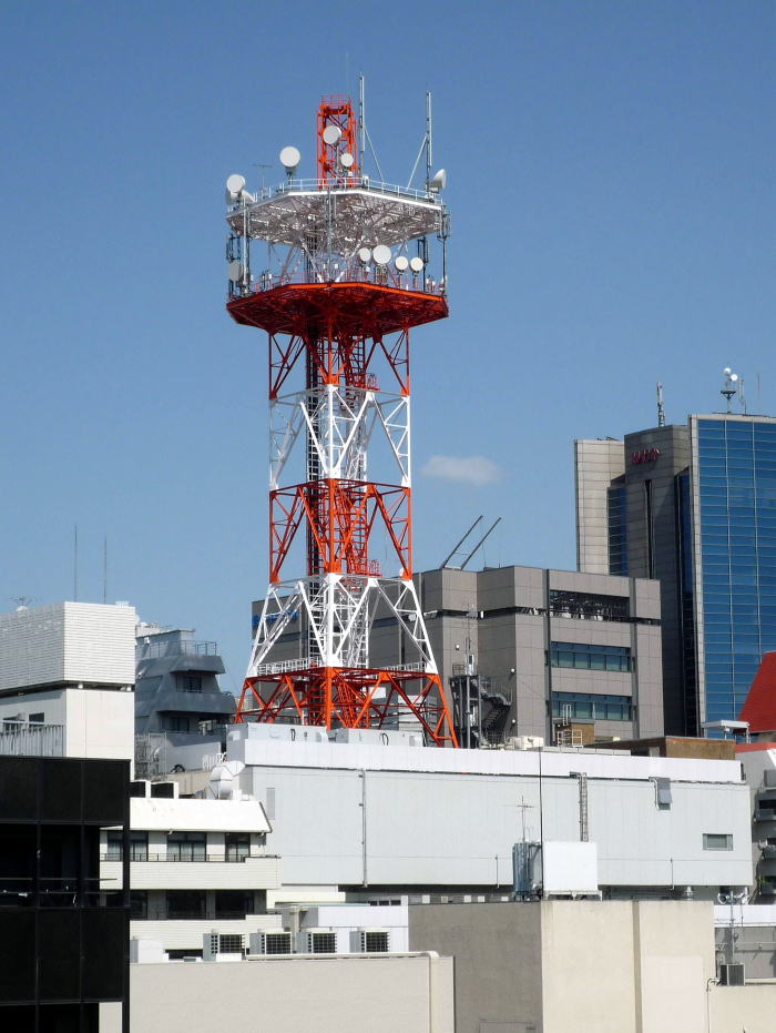 阪神高速・法円坂出口付近から見える鉄塔はこのビルのもの