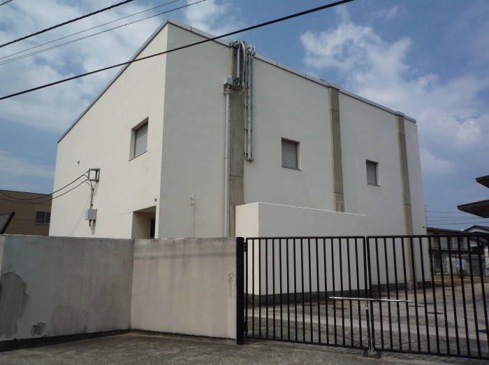 交換機は、左側の建物内にあると思われます。