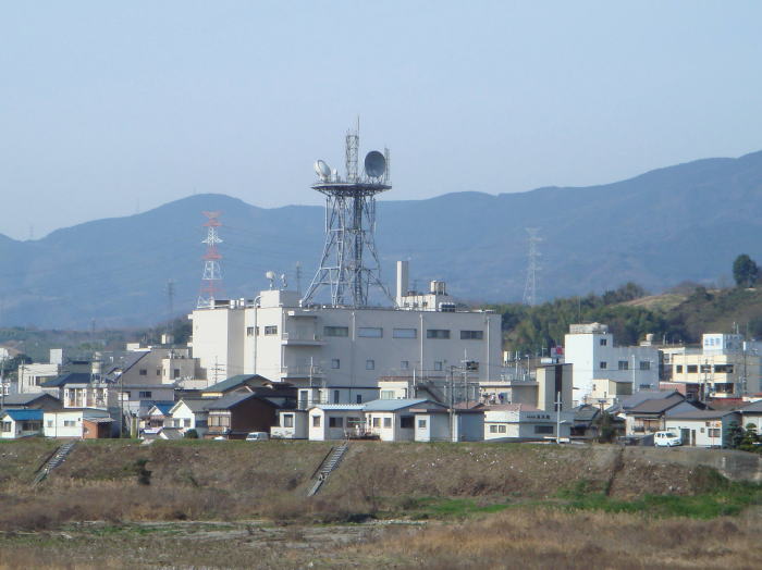 紀ノ川越しに見える鉄塔が美しい電話局です。