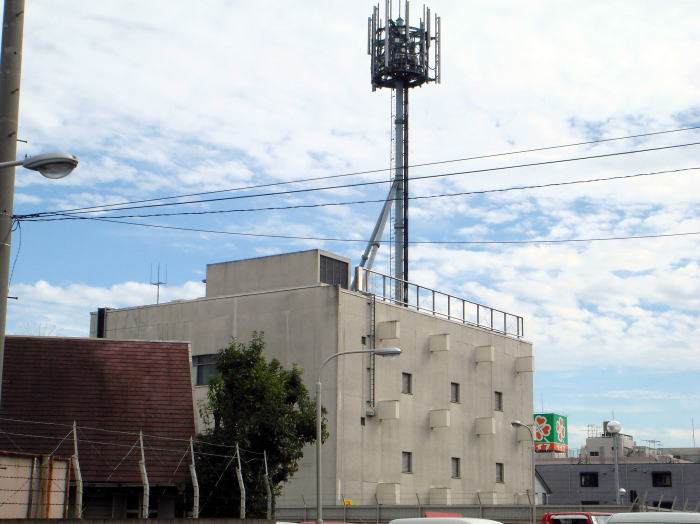 電話局でよく見かける外壁からとび出した梁が特徴的です。