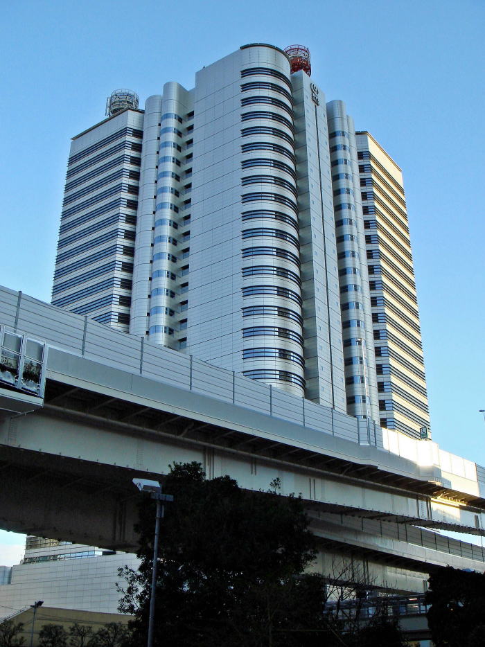 メカニカルなデザインが特徴的なNTT東日本本社ビル。