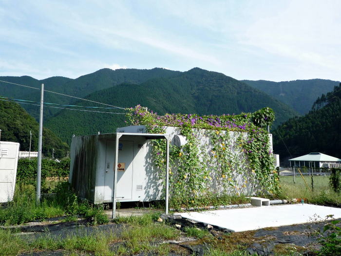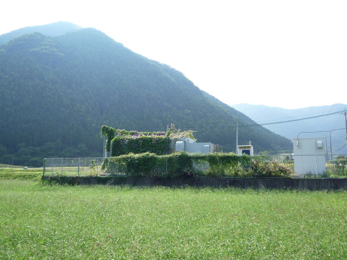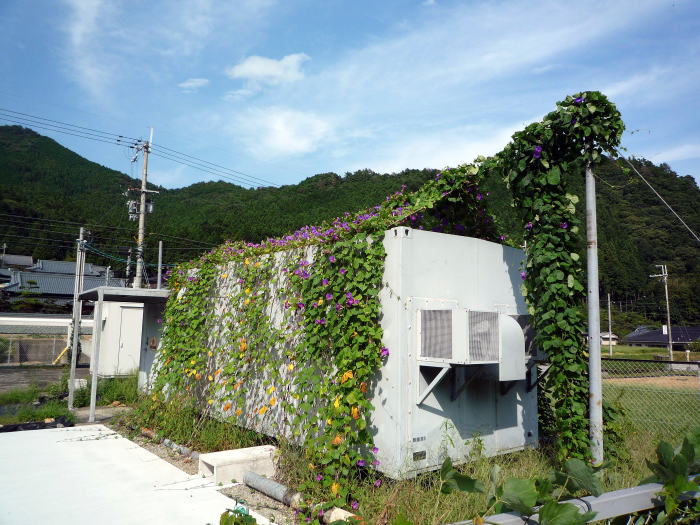 省エネ対策として、「宿根アサガオ」に囲まれた局です。