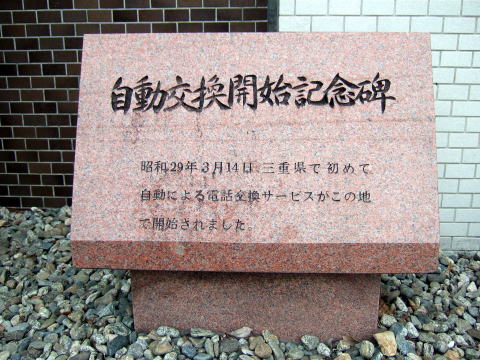 自動電話交換開始記念碑。