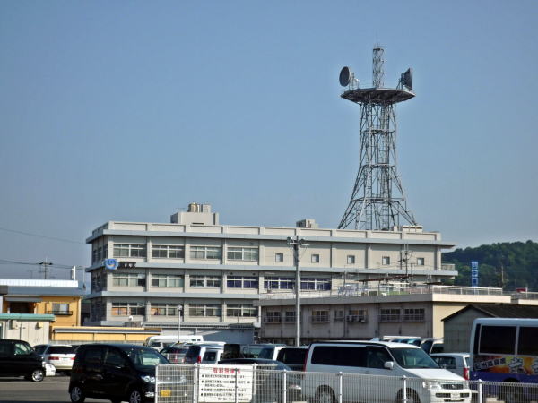 大きな目玉のようなアンテナで遠くを睨んでいる電話局です。