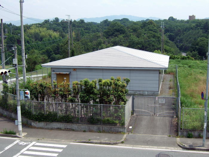 屋根が特徴的な無人プレハブ局舎です。