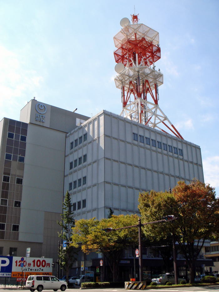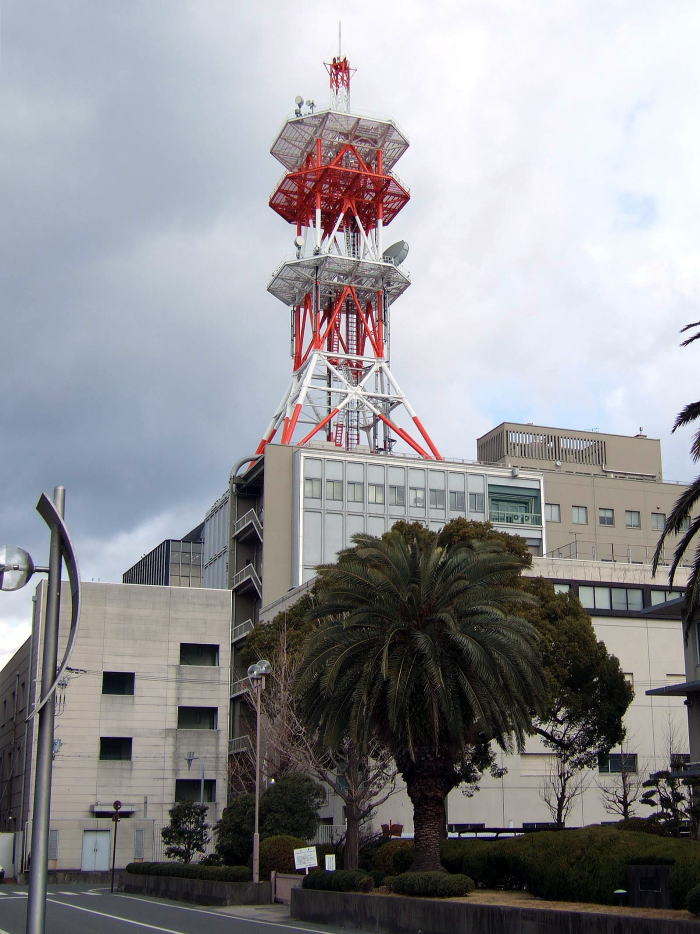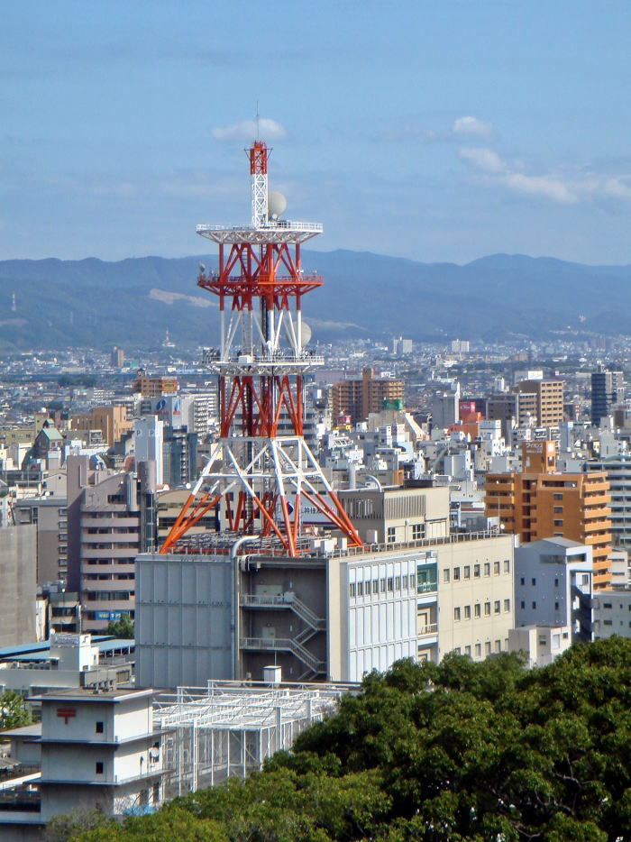 和歌山城のお堀越しに見た公園前ビル(手前鉄塔)
