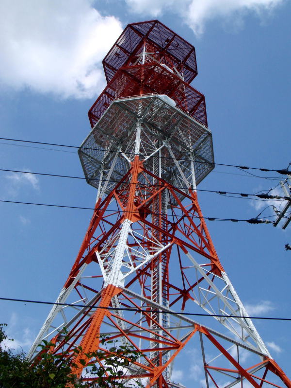 山中にある無線中継所では、比較的珍しい「赤白鉄塔」です。