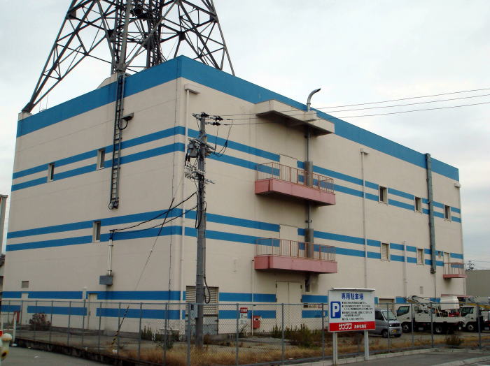奇抜なカラーリングの電話局。とほほ。