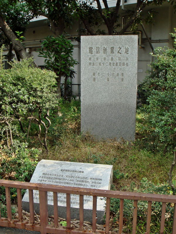 「明治2年9月19日(太陽暦10月23日)横浜裁判所と東京築地運上所に設けられた「傳信機役所」を結ぶ約32キロメートルの電信線架設工事が開始され、同12月25日に業務を開始した。これが、我が国における公衆電気通信の最初である。