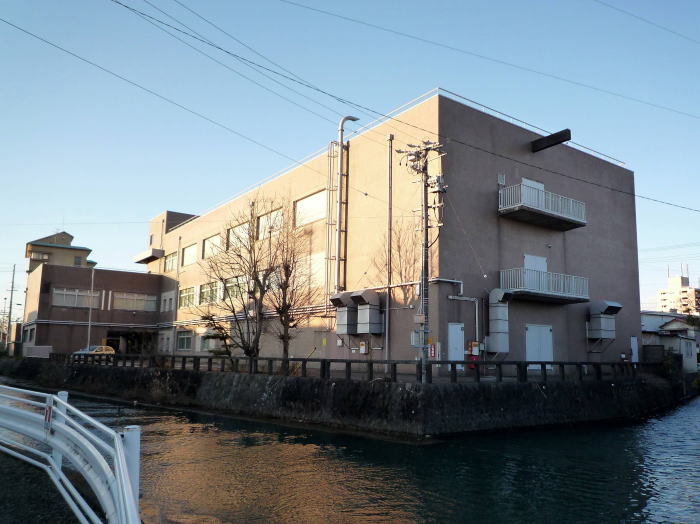 局前を流れる黒石川と局。