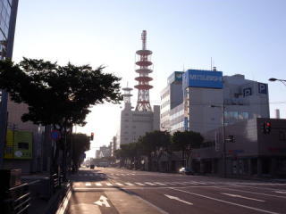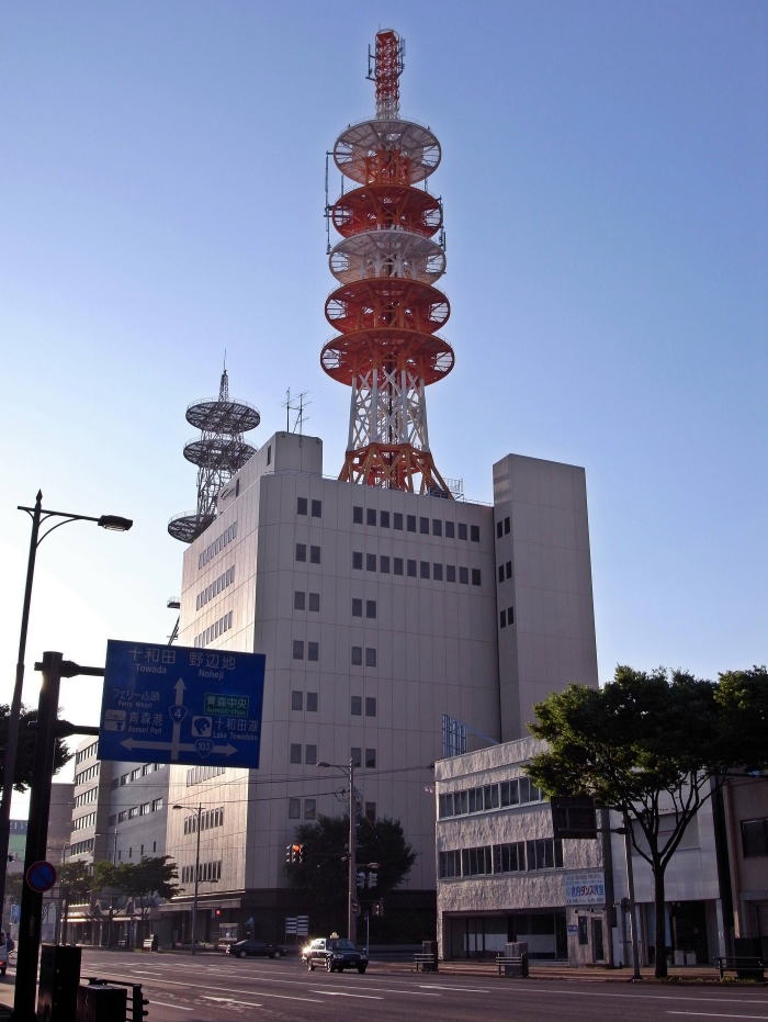 赤白鉄塔のコムビル、ちいさな鉄塔がNTT東日本ビルです。