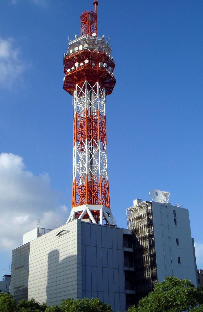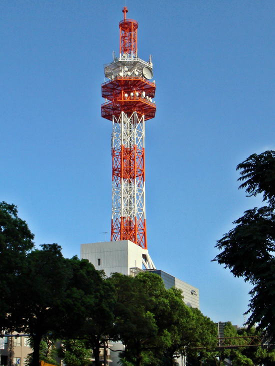 天に指差すような鉄塔が美しいコムビルです。