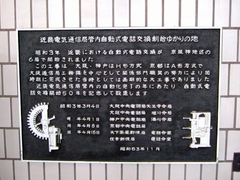 近畿電気通信局管内自動式電話交換創始ゆかりの地