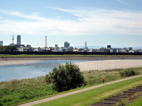 長良川沿いに見えた金町ビルの鉄塔。