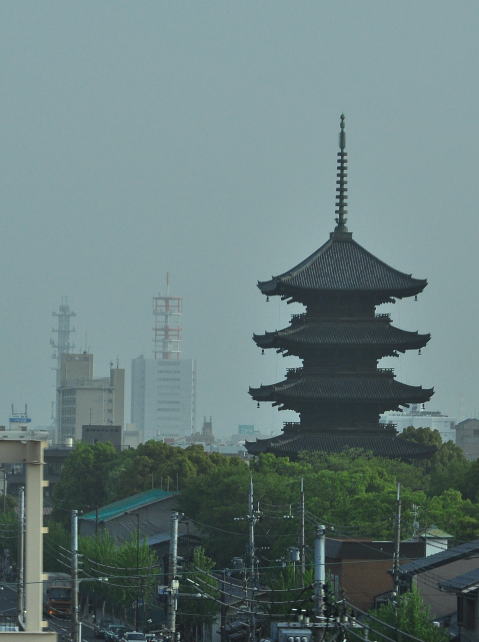 東寺(教王護国寺)の五重塔と鉄塔。