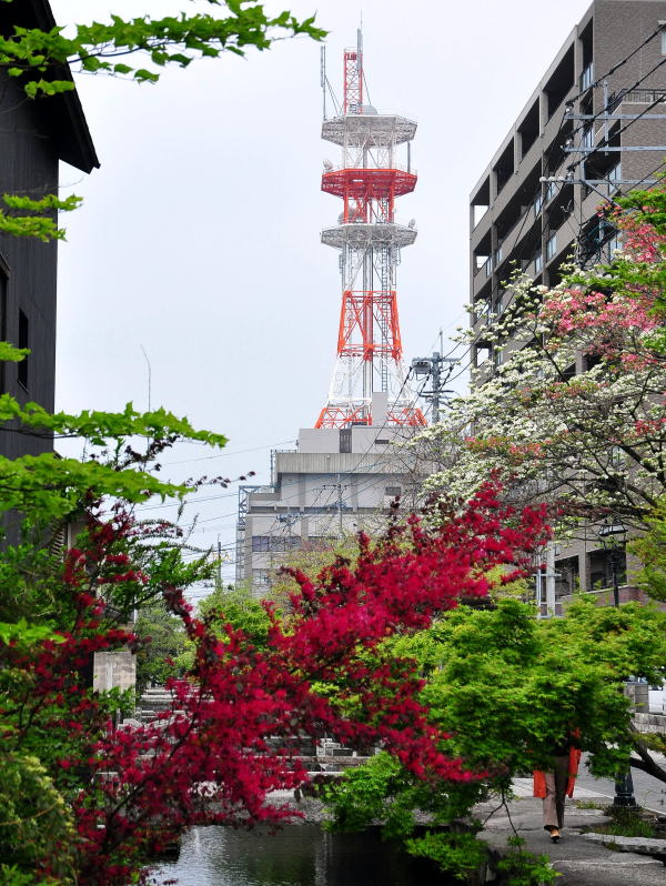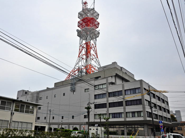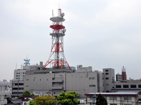 [左] 佐賀城お堀越しに見えた鉄塔。