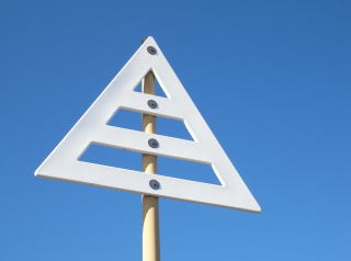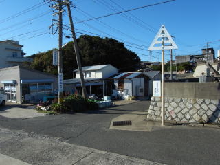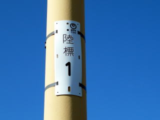 局近くで見つけた、海底ケーブル陸揚標識(△マーク)。