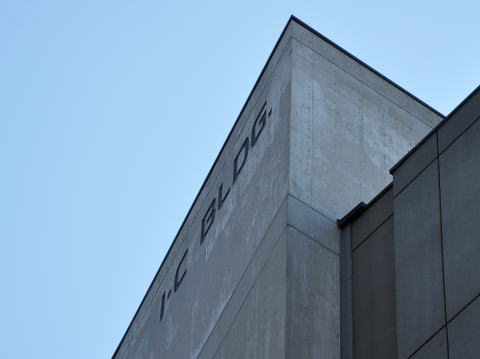 北側に建つ「I・C BLDG.」と記されたビル。