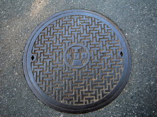 点在する旧KDDロゴのマンホール。