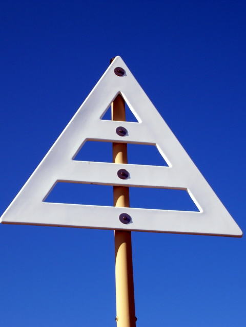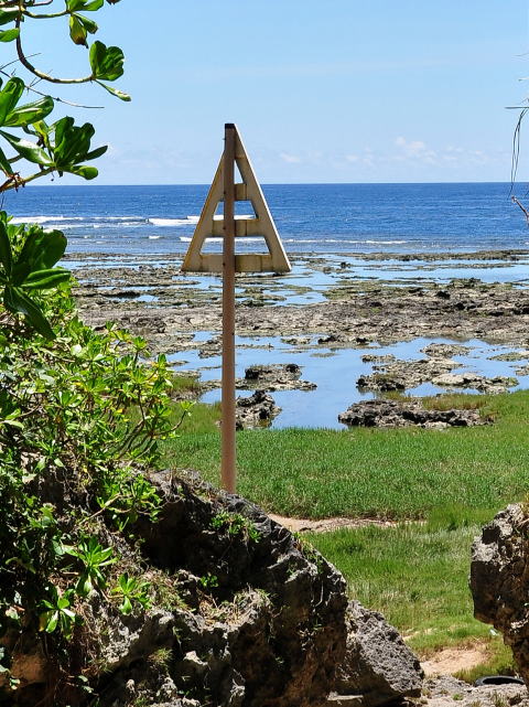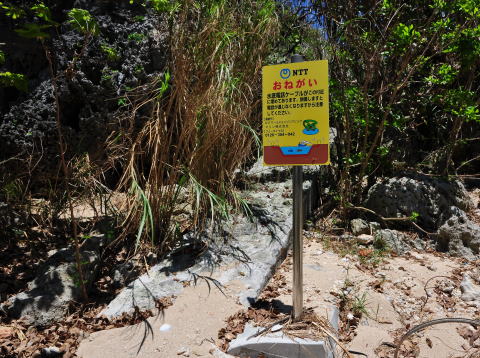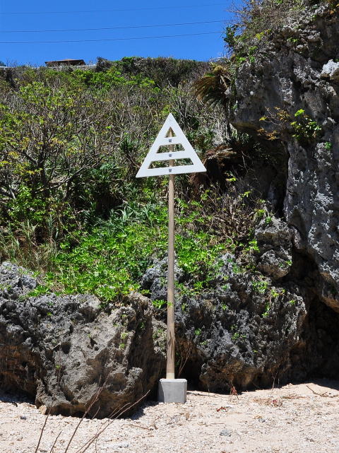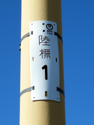 海底ケーブルの陸揚地点に掲げられる△マーク。