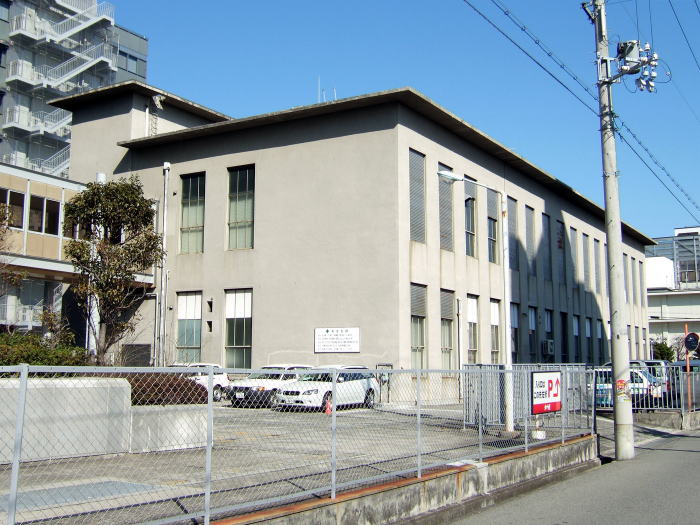 局前のマンホールは、「明石名物のタコ」のように真っ赤!。
