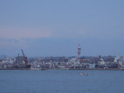 フェリー上から見えたNTT明石ビルの鉄塔。