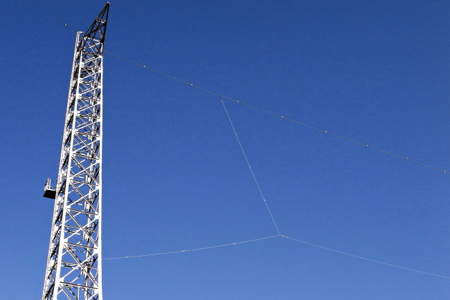 ※写真では分かりにくいですが、鉄塔間にワイヤーアンテナが張られています。