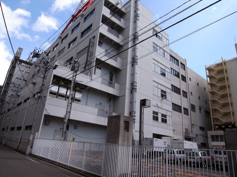 南側から見れば、無骨で壮大な電話局。