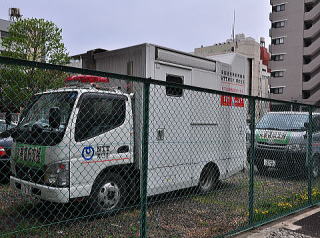 衛星通信移動無線車が停まっていました。