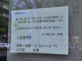 東日本大震災を受け、営業時間が短縮されていました。
