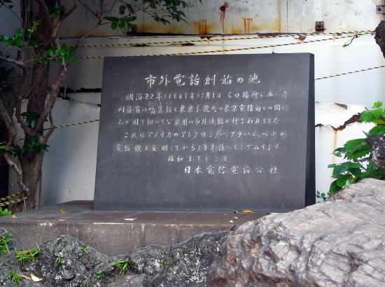 噏滊館のあったのが、この場所でしたのでわが国市外通話発祥の地を記念して「市外電話創始の地」の碑を立てました。