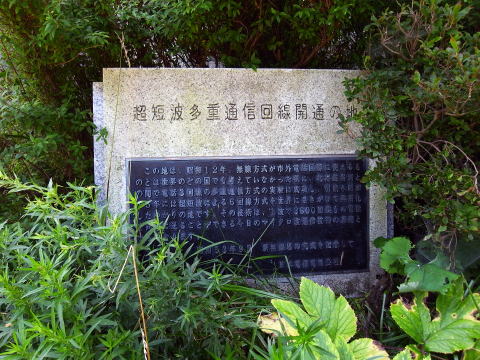 この地は、昭和12年、無線方式が市外電話回線に使えるものとは世界のどの国でも考えていなかった頃に、北海道当別との間で3回線の多重通信方式の実験に成功し、引続き昭和15年には超短波による6回線方式を世界にさきがけて実用化したゆかりの地です。その技術は、1波で3600回線もの電話を同時に送ることができる今日のマイクロ波通信技術の基礎となっております。