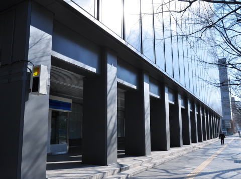 無骨な黒の外壁パネルが、電電ビルらしい。
