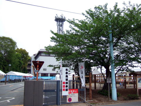 電柱は足場組立装置により現場において施工したもので、ホーロー引の番号札が取り付けられていました。