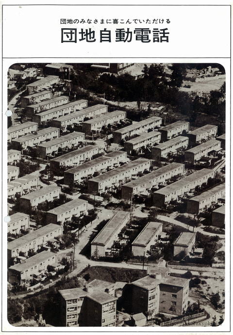 団地内の適当な場所に、最新式の自動交換機を置き、そこからそれぞれのお宅にダイヤル式の自動電話をおひきします。