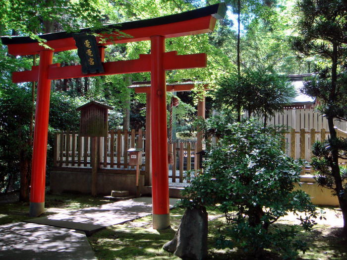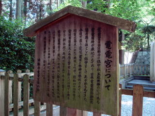 今日で云う電気電波の祖神が祭祀されている。同宮は幕末の兵火で消失したが、昭和四十四年電気電話関連業界の発展と繁栄を新たに祈願する趣旨から、新社殿の再興がなされて今日に至っている。