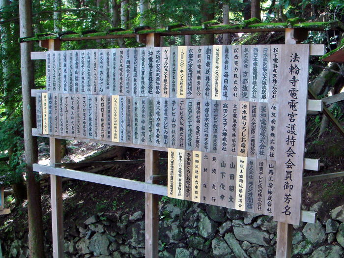電力、電気電子、電波の発展は人類の生活文化向上に大きく貢献し、世界の平和と繁栄に不可欠なものであり、その祖神を奉祀する電電宮は広く電気、電波関係者より崇敬されている。法輪寺電電宮護持会 (案内板より抜粋) |