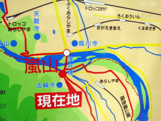 渡月橋向かって対岸の山中建物が「法輪寺」。(歩いて10分程度で行けます)