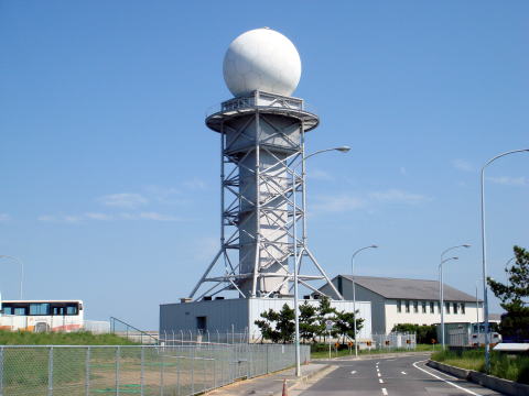 ユニークな形の「関西空港地方気象台 空港気象レーダー局舎」