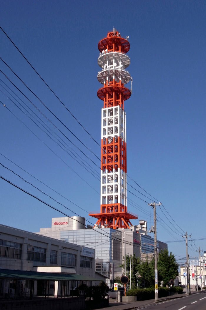 高く鮮やかな鉄塔は、高いビルが少ない青森市内で.とても目立ちます。