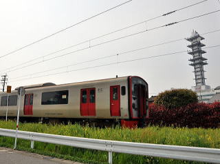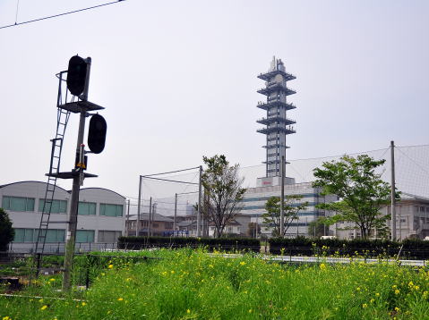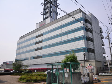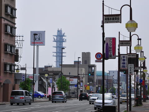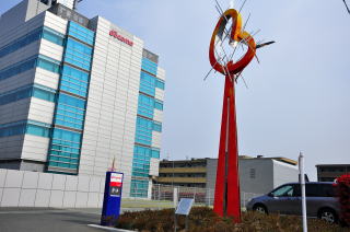 ビル前のモニュメント「OPEN SKY:KUMOMOTO」。