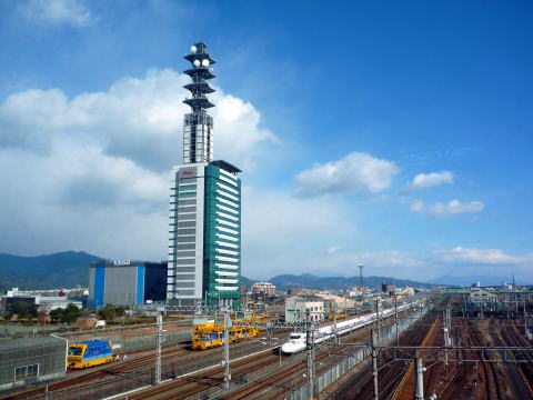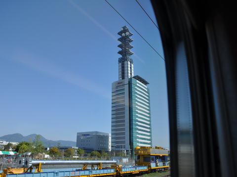 東海道新幹線車内から見えたドコモ静岡ビル。