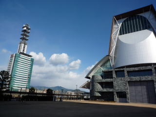 県立複合文化施設「グランシップ」(左)とドコモビル