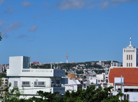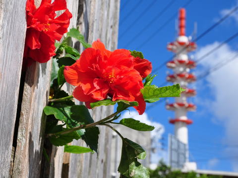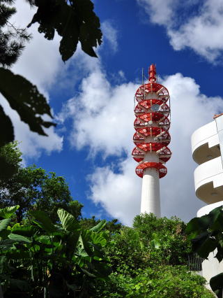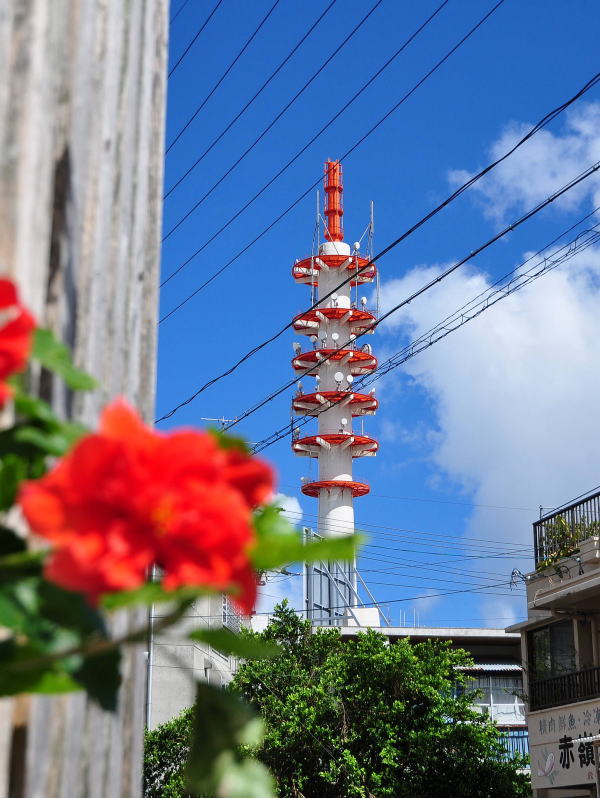 南国の花のような鮮やかな鉄塔のドコモビル。