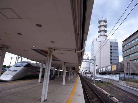 山形駅プラットフォームから見たドコモ山形ビル。