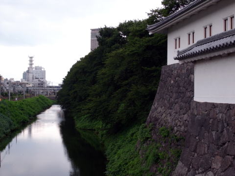 山形城(霞城)のお堀ごしに見えたビル。