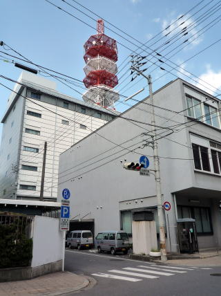 高層棟は一つのビルのように見えますが、2つのビルが渡り廊下で繋がっています。右側が「NTT松山3棟ビル」(収容局)、左側鉄塔ビルが