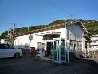 局最寄りのJR江住駅(写真左)と、局前風景。